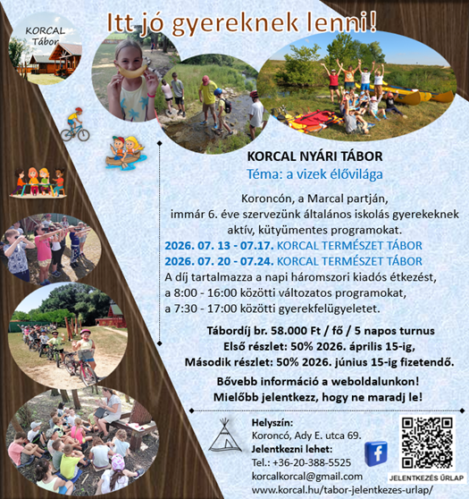 AKTÍV IDŐ KORCALON!Most gyere akár egy napra és csatlakozz táborunkhoz! Az ár tartalmazza a napi 3x étkezést és a programokat. Az űrlap kitöltésével jelentkezhetsz, válaszd ki a kívánt tábort és az "egyéb információ" pontnál add meg a részvételi napot/napokat.